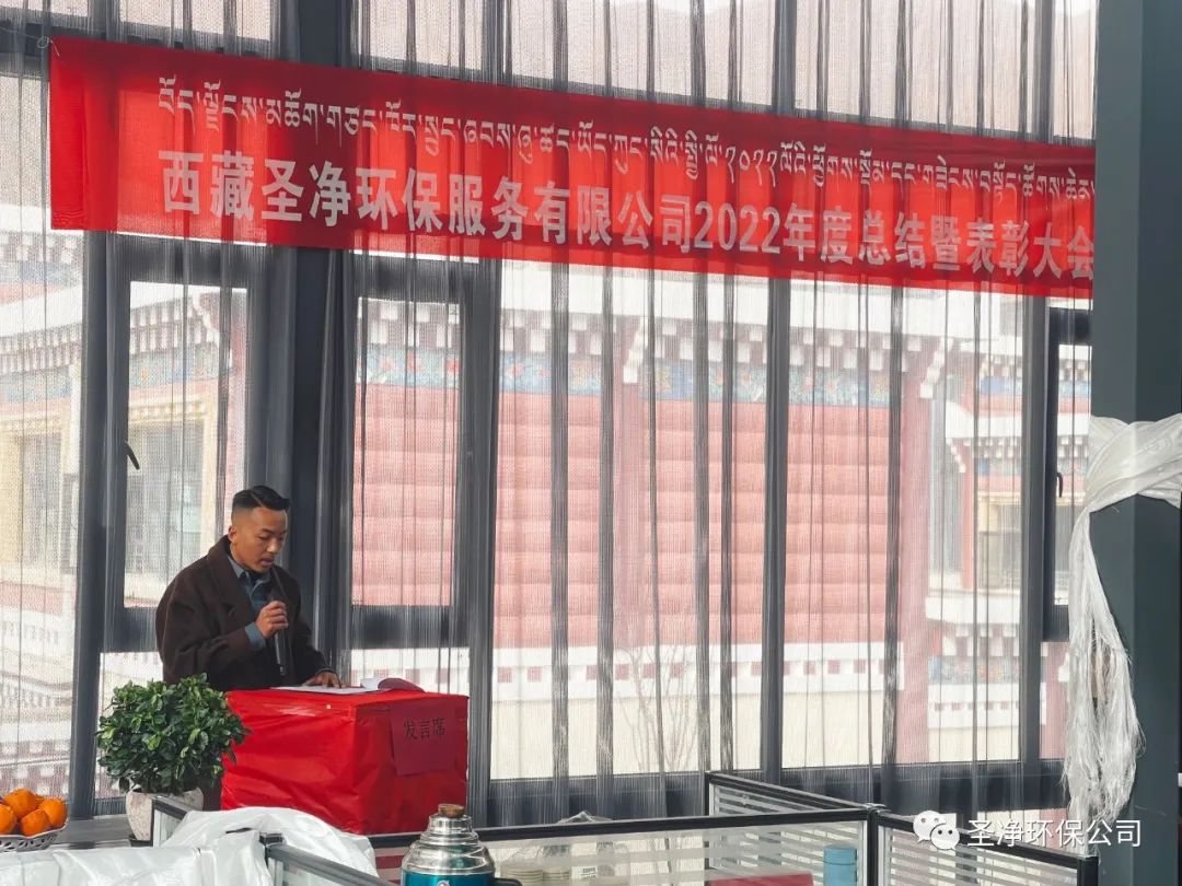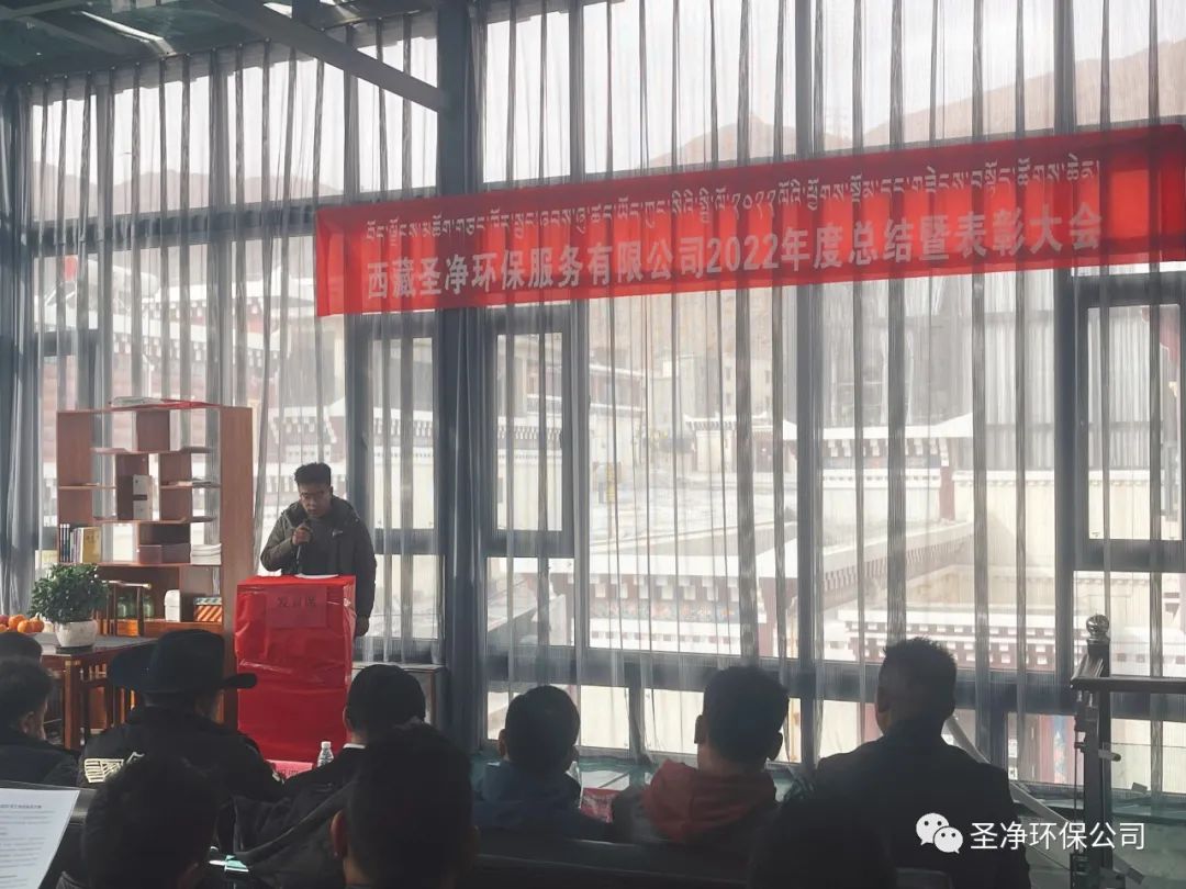 2023年2月17日11:00分,西藏圣凈環(huán)保服務(wù)有限公司在總公司二樓辦公室召開(kāi)2022年度總結(jié)暨表彰大會(huì)??偨?jīng)理達(dá)瓦、股東尼瑪羅桑、股東達(dá)瓦多吉、副總經(jīng)理尼瑪次仁、公司顧問(wèn)王常鵬、綜合辦公室主任旦真多吉、商務(wù)部經(jīng)理兼日喀則分公司經(jīng)理朗珍江參及各部門(mén)負(fù)責(zé)人、各分公司經(jīng)理、環(huán)衛(wèi)項(xiàng)目部經(jīng)理、污水處理廠廠長(zhǎng)、優(yōu)秀員工代表和總公司全體員工出席會(huì)議。